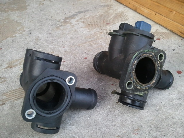 このプラスチック製のフランジは、クーラント漏れの定番の箇所です