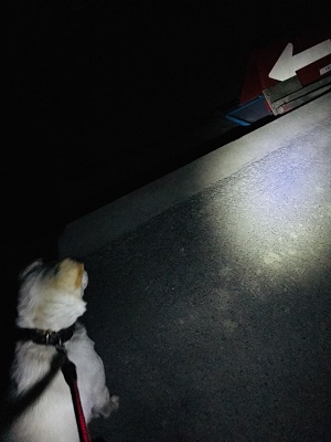 今夜もご機嫌でお散歩を楽しむ営業部長が突然立ち止まり、後ずさり。