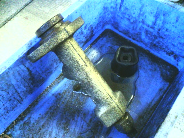 ブレーキのマスターシリンダーからブレーキフルードが漏れてるのが原因でしたので、新品に交換し4輪ともエア抜きをして完了。