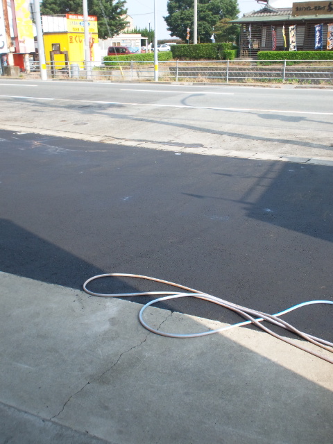 今日は、テナント前の駐車場の舗装工事の日でした。