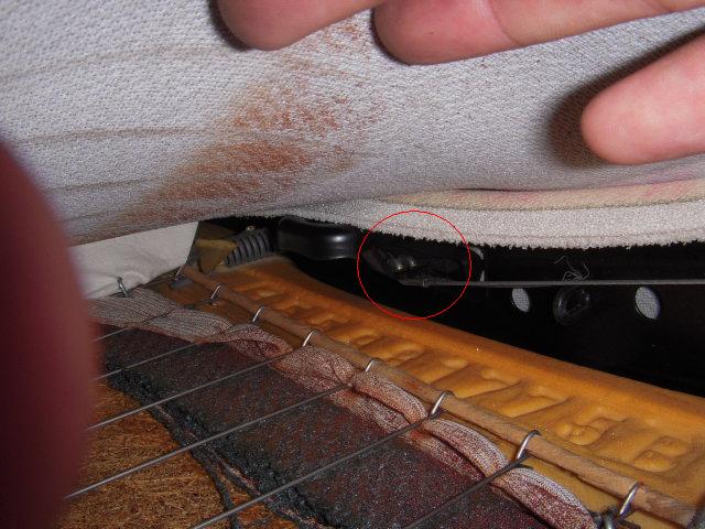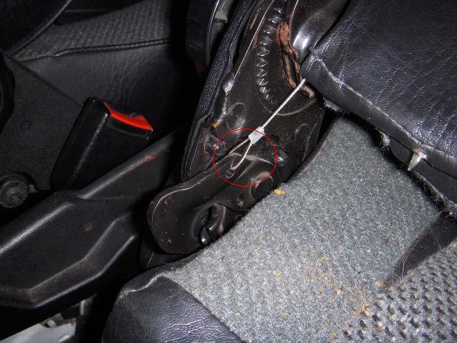 シートの背もたれをバラして見てみると、中でワイヤーがちぎれてました。