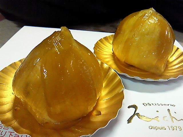 たまねぎはシロップでコーティングしてあって、割って中を覗いてみると砂糖とバタークリームが。