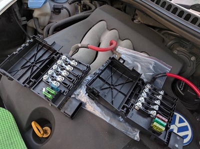 バッテリー上部のヒューズボックスが通電不良を起こし、オーバーヒート状態になってしまっておりました。